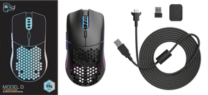 • 1 x Glorious Gaming Mouse Model O • 1 x Ascended Cord USB-C • 1 x Extender Dongle • 1 x Wireless Adapter