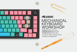 From Friday, 10/14 to Sunday, 10/16, you can join Glorious at the north New Jersey Micro Center for our mechanical keyboard workshop.