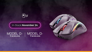Wednesday, 11/24 at 11 AM CT, Model O- and D- Wireless both officially launch as in-stock items on gloriouspcgaming.com.